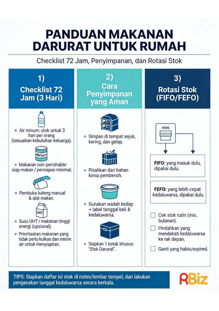 Panduan Makanan Darurat untuk Rumah: Checklist 72 Jam, Penyimpanan, dan Cara Rotasi Stok
